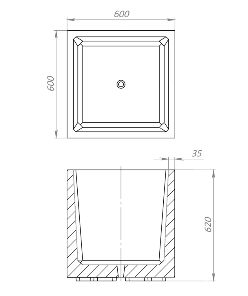 Однак, якщо Ваші задачі потребують іншого рішення, ми можемо виготовити вазон без дренажного отвору. Такий варіант підходить для використання всередині приміщень, для водних рослин чи інших нестандартних проектів.